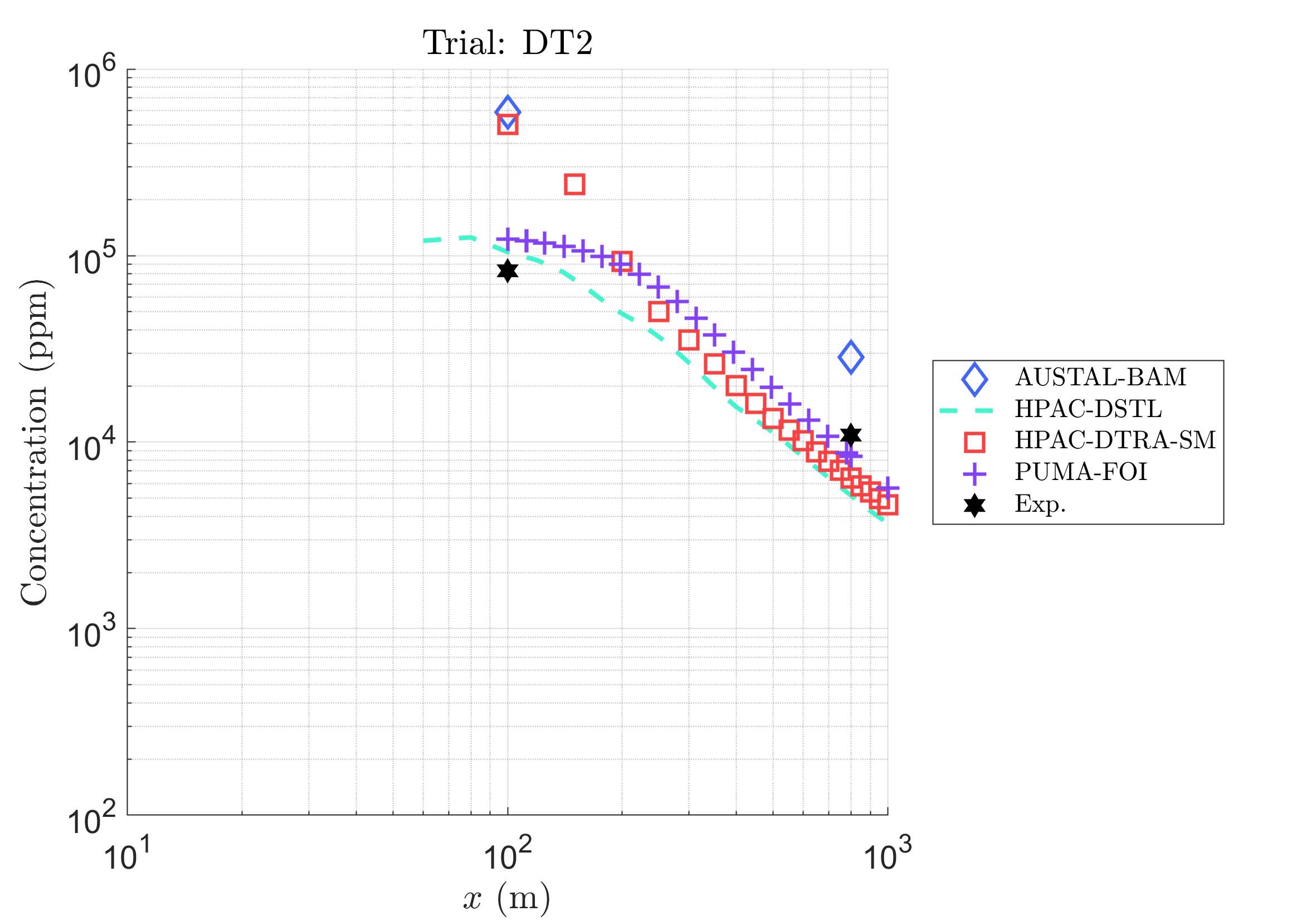Each of the modelling groups participating in the exercise was asked to provide (as a minimum) arc-max concentrations for Desert Tortoise trials 1, 2 and 4, and FLADIS trials 9, 16 and 24. They were also invited to provide a short summary of the models that they had used and a description of how it had been configured. In Table 1 (below), there are links provided to zipped files with this information that they provided – click on the name of the organisation to download the relevant file. A complete package of all of the submissions from the modellers can be downloaded as a zipped file by clicking on this link.